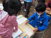 1学期の学習をよく覚えていて、ブロックの使い方や図の表し方がスムーズにできていました。また、ペアで自分の考えを説明したり、線を引きながら問題文を読んだりすることにもすっかり慣れましたね。