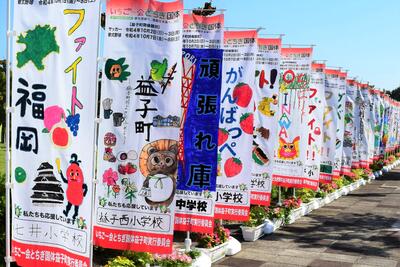 写真は先日O議員さんが競技会場の“のぼり旗”を撮影してくれたものです。「各県の特徴を捉えたすばらしい作品ばかり」と、その出来栄えを褒めていましたが、本当に力作揃いです。子供たちは昨年度から準備や応援に関わってきました。“栃の葉国体”以来42年ぶりの地元開催に、県をあげて皆がんばりましたね。推進スタッフの方々にも感謝申し上げます。