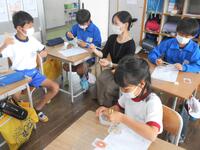 1-2国語「どうぶつたちがおしえてくれたことをまとめることができる」物語の登場者を順に追いながら内容をノートにまとめていました。漢字の筆順も全身で練習
