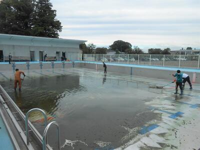 運動会駐車場箇所の除草や、プール清掃、廊下テープ貼り等を協力的に進めました。