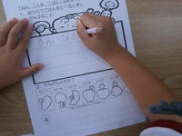 1-1国語「ようびのことばをおぼえてかんじでかく」リズミカルに曜日の詩を読んだり、ていねいにノートに書き写したりしていました。上手な字ですね