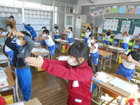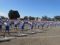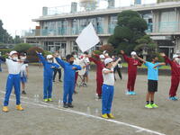 業間に、全校生で整列の仕方やラジオ体操を行いました。