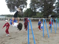 この時季の秋晴れを「菊晴れ」と言うそうですね。今日は雲はありましたが気持ちの良い青空の下、昨日とは打って変わっての陽気の中、子供たちは元気いっぱいに遊んでいました。(^_-)
