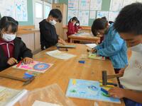 3-2図工「くぎうちトントンでゲームをつくる」迷路ゲームや野球ゲーム、ダーツゲーム、コリントゲームなど、自分だけのゲームづくりに熱中していました。金づちの使い方もOK