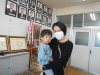 育休中のT先生が書類を届けに来校しました。かわいいお子様連れです。