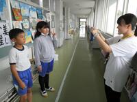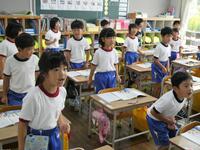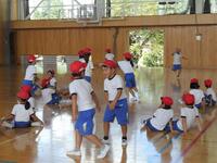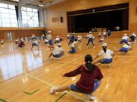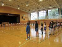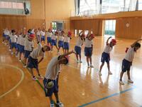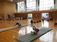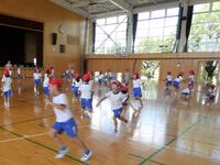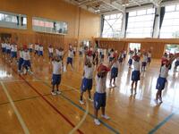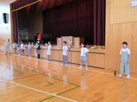 1年生は国語や算数の勉強をしたあと、体育館でラジオ体操の練習をしていました。手足をいっぱいに伸ばして大きくポージング、気持ちがいいですね。