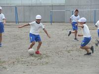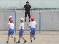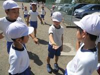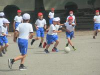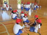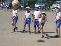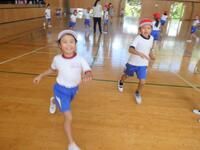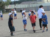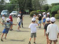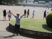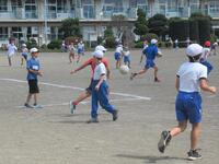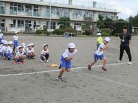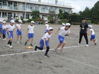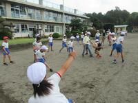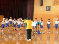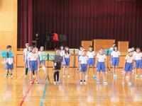 1年生の体育は、並び方や体操練習後に、笛の合図ゲームを楽しんでいました。