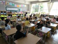 2年生は音楽で「ジェットコースター」の歌を歌っていました。「乗ったことある?」と尋ねると「一回転するやつに乗ったことある」「乗ろうと思ったけど見たらこわくなって乗れなかった」「夏休みにディズニーシーへ行って乗ってきた」「パパが大声出してうるさかった」と止まらない様子。
