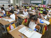 子供たちは窓の外の天候を気にしながらも各学習を進めていました。席替えをしたクラスも多く、気分も新たに2学期がスタートできている様子でした。業間は身体測定(6年生)や合唱練習(3~6年生)も行っていました。また5年生は3校時に「よさこいソーラン」の練習を始めていました。今年の運動会では高学年生としてかっこよく踊ってくれることでしょう。楽しみです。