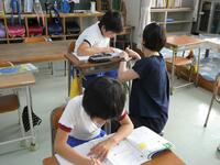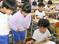 1年生は連休疲れもあるかと思いきや、5時間目も漢字練習や計算テキストなど、集中して学習内容に取り組んでいました。