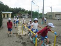 夏休み中に“新しい一輪車練習台”を設置しました。後援会費より支出させていただきました。ありがとうございます。安全に練習台を活用し、子供たちの一輪車乗りがますます上達しますように…。(^_-)