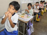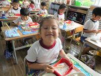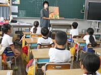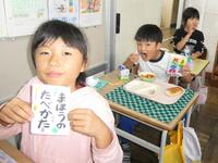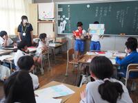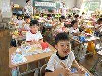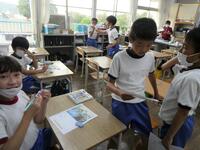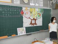 先週に引き続き、栄養教諭のK先生と実習生が来校し、1年生に学活「げんきのひみつをみつけることができる」の食育指導をしていただきました。紙芝居や “栄養の木クイズ” などを通して、苦手な食材も一口は食べてほしいことを子供たちに話し、その後の給食の様子も見てくださいました。子供たちはいつも以上の食べっぷり…笑顔にあふれていましたね。