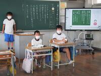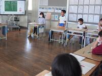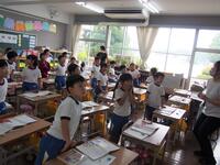 暑さ対策としてリモートにて実施しました。校長の話「1学期を振り返って」に続いて、1・3・5年生代表児童による作文発表、そして校歌は生伴奏で歌いました。式後に、児童指導主任からのクイズ形式の注意事項や、大会等の賞状伝達も行いました。(受賞者名は後日の学校だよりでご確認ください。)