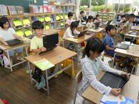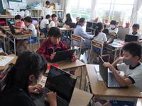 1年生はchromebookの使い方を練習していました。パソコンの先生に指導していただき、パスワード入力やカメラ機能を試していました。