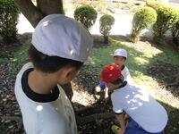 1年生はアサガオの種を収穫していました。袋に入れた種を大事そうに見せてくれました。