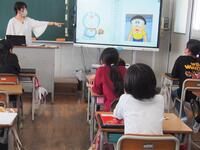 2年生の外国語活動は、フルーツの言い方の練習です。メロンとウォーターメロンの違いがわかっていましたね。