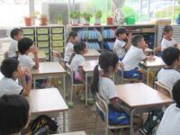 1-1学級活動「としょしつのつかいかた」借りていた本を返却し、新たな2冊を貸し出してもらいました。司書の先生に「〇〇の本ありますか?」と積極的に質問する子もいましたね。