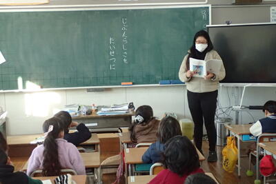 本日は、1年生にかたつむりの会の方の読み聞かせがありました。