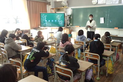 栄養教諭の望月先生と2年生の食育栄養指導が行われました。