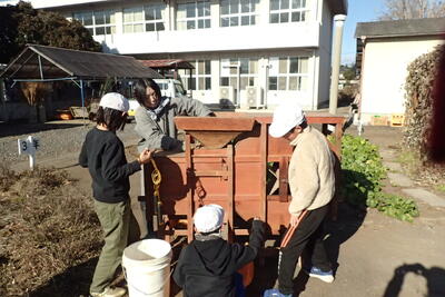 6月に蒔いた大豆を本日、ボランティアの皆さんと収穫しました。ボランティアの皆さんが、お借りしてきた昔ながらの脱穀機を使って、脱穀もしました。児童たちは、ボランティアの皆さんと収穫体験や脱穀作業を行うなど、楽しく貴重な体験をすることができました。ボランティアの皆さん、今日はありがとうございました。