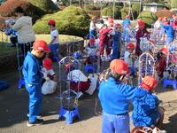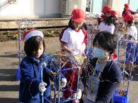 6年生がパンジーの苗植え作業を行い、花壇が冬の花に変わりました。ご苦労さま。