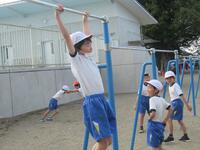 県の体力向上ET(エキスパートティーチャー) W先生に5年生体育の授業実践②をしていただきました。学習内容は「体つくり運動」です。準備運動やストレッチ後、柔軟性や筋力を高める運動(ブリッジ、前屈開脚立ち、腕立てジャンプ)や、敏捷性・持久力を高める運動(場所取り鬼、アメリカンドッジボール)などを行っていました。