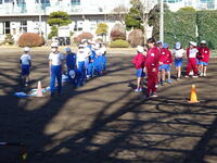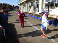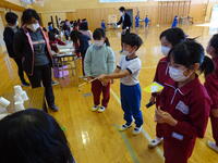 4年生と1年生が一人ずつ組になり、4年生が1年生に跳び方を教えたり、見本を見せたりしながら、なわとび検定を行いました。1年生は4年生からやさしく、わかりやすく教えてもらっていました。