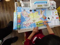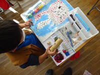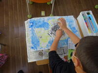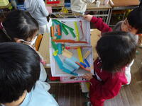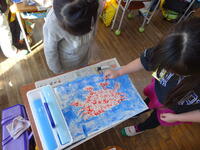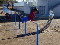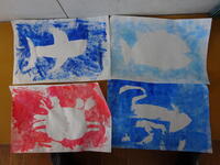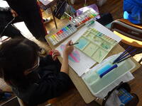 1年生は図工の時間に絵の具を付けて写すことができる身辺な材料を使って模様をつけた絵をつくっていました。用意した材料を上手く工夫して模様をつけていました。3年生は体育の時間にハードルと鉄棒の学習をしていました。ハードルは低いものを使って跳ぶことに慣れる練習をしていました。鉄棒ではいろいろな技の練習をしていました。