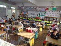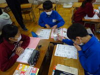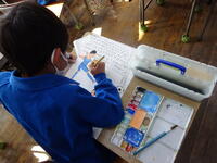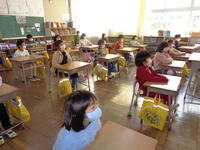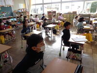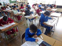 1年生(図工)、2年生と6年生(なわとび検定)、4年生(算数)の授業の様子です。今日も子どもたちは一生懸命学習していました。