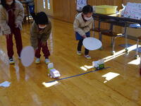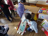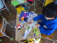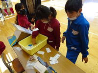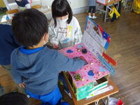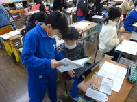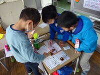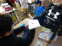 2年生の生活科の授業では、みんなで楽しく遊べるおもちゃを作り、1年生と交流をしました。2年生が作ったおもちゃの遊び方を説明したり、一緒に遊んだりするなど、とても楽しい交流学習ができました。