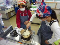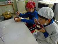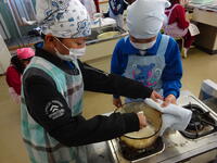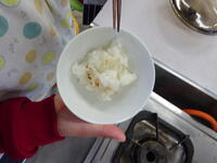 5年生の家庭科の授業で調理実習をしました。ご飯の炊き方の学習で、お米をとぎ、ガンスコンロでご飯を炊きました。みんな上手に炊きあげることができ、おいしくいただきました。おこげまで残さず食べていました。