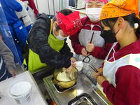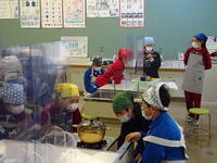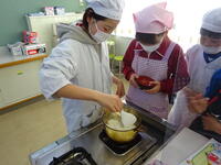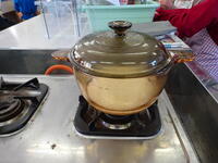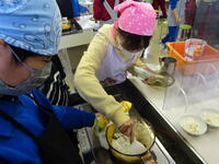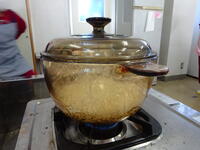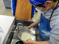 今日は、昨日とは別の6年生のクラスの家庭科の授業でご飯の炊き方の調理実習をしました。上手にご飯を炊くことができ、おいしくいただきました。