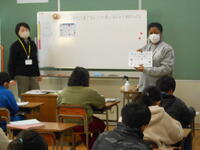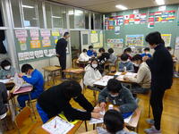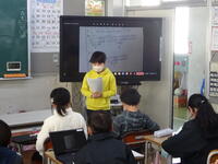 小中連携の一環として6年生の外国語の授業を七井中や町教育委員会の先生方が参観し、その後、話合いをしました。