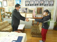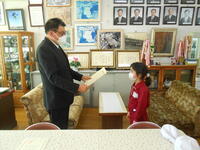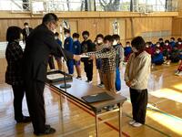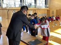 今日は、表彰式を行いました。多くの表彰者がいたため、代表の児童を昼休みに校長室で表彰しました。