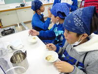 今日は、6年生の家庭科の授業でご飯の炊き方の調理実習をしました。お米をといで、ガンスコンロでご飯を炊きました。ふっくらと炊きあがったご飯をおいしくいただきました。おこげまで残さず食べていました。