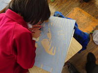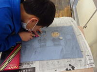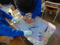 3年生の理科の授業では、磁石を使ったおもちゃづくりをしていました。4年生の図工の授業では、自分の姿を描いた版画づくりをしていました。