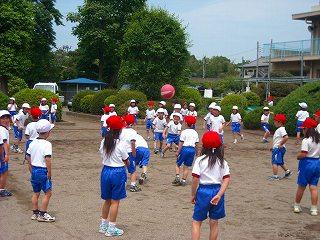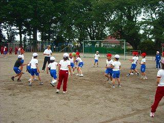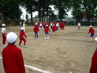 1~3年生はクラスごとにドッジボール、6年生は男女別にキックベースをやりました。