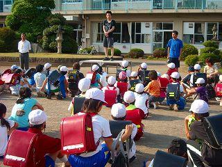 集団下校時に、七井小のスクールガードと安全ボランティアの方々の紹介がありました。