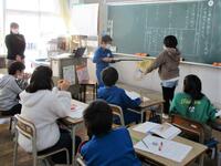 4-1国語「ごんぎつね」中心人物とほかの人物の関わりについて考え、感想を伝え合う学習内容です。本時は6の場面のごんと兵十の気持ちを考えました。ごんと兵十の行動を確かめて役割演技をしたり、語句の意味を確認したりしながら、子供たちが正しく読み取れるように進めていました。名作の親子読書&感想交換をおすすめします。