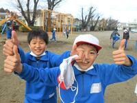 寒くても元気な子供たち、“よく遊びよく学べ!” さあ明日から学力テストです。(^_-)