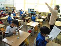 町学力調査終了後「自信ある~!」と答える子供たちの隣で先生は…(^^;)「結果が楽しみです」