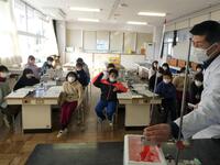 1-1、1-2外国語活動「1~15までのえいごのかずのいいかた」、3-2道徳「仕事のねつい」、4-2国語「ごんぎつね」、5-1算数「割合」、5-2音楽「風とケーナのロマンス」6-1算数「拡大図と縮図」、6-2社会「江戸時代の文化」の学習の様子です。