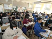 1-2図工「ごちそうパーティー」、2-1音楽「こぎつね」、4-2理科「人の体のつくり」、5-2外国語「Pleaseをつかって言おう」、6-1音楽「LOVE」、6-2国語「町の未来をえがくプレゼンテーション」の授業の様子です。3年生は益子特別支援学校との交流活動に出かけて行きました。