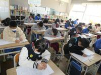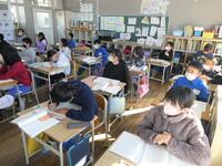 今日は特別日課で午前中のみの授業となります。写真は1・2校時の全クラスの学習の様子です。6年生の理科では、数億年前のアンモナイトや三葉虫の化石など、K先生の貴重な私物を見せてもらっていました。