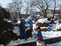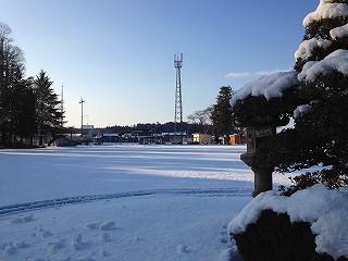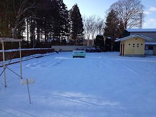 昨日降った雪が校庭を銀世界に変えてしまいました。先生たちが一生懸命雪かきをして、みんなが歩く道をきれいにしました。気をつけて登校してください。