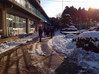 雪のため登校を1時間遅らせて、9時15分登校とします。15日の朝は道が凍ることが予想されます。十分気をつけて登校してください。