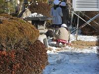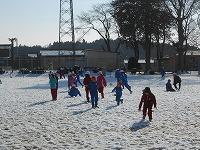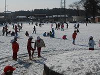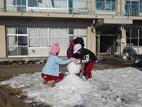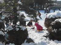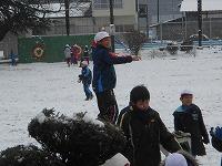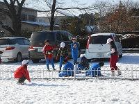 雪がたくさんある校庭では、子どもたちが、雪合戦をしたり雪だるまを作ったりして遊んでいました。
