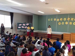 2月1日(金)体育集会、移動読書教室2校時4年生