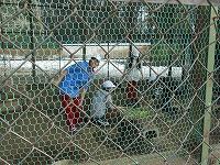 「なかよし動物園のうさぎが2羽脱走しました!」と野球部の6年生が職員室に報告に来てくれました。うさぎは「なかよし動物園」のまわりの草をおいしそうに食べていました。捕まえようとすると、自分から「なかよし動物園」に入っていきました。中のドアが少し開いていて、外ドア近くの穴から出て来たようでした。自分から小屋にもどるとは、かしこいウサギでした。