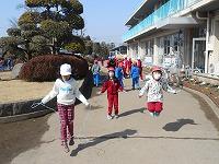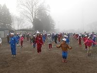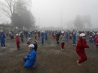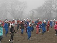 大きな円を作っての準備運動 走る力をつけています。